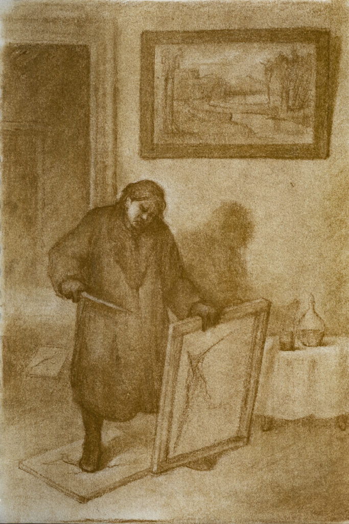 La meg bare si at jeg malte ham med avsky, arbeidet gav meg ingen glede. Jeg ville undertvinge meg selv, og døv for alt følelsene ville si meg, prøvde jeg å være naturen tro. Det ble ikke et poetisk verk, og derfor er det opprørske og urovekkende følelser som griper folk når de får se det – ikke en dikters følelser, for hos en ekte dikternaturs følelser ånder selv uroen av fred. Det blir meg fortalt at dette portrettet går fra hånd til hånd og sprer uhygge, inngir malere med misunnelse, svart hat til sine brødre og en ondskapsfull tørst efter å forfølge og plage andre. Må den Allmektige bevare deg for slike lidenskaper! Det finnes ikke noe verre. Det er bedre selv å være offer for den bitreste forfølgelse enn å medvirke det aller minste til å forfølge en annen.