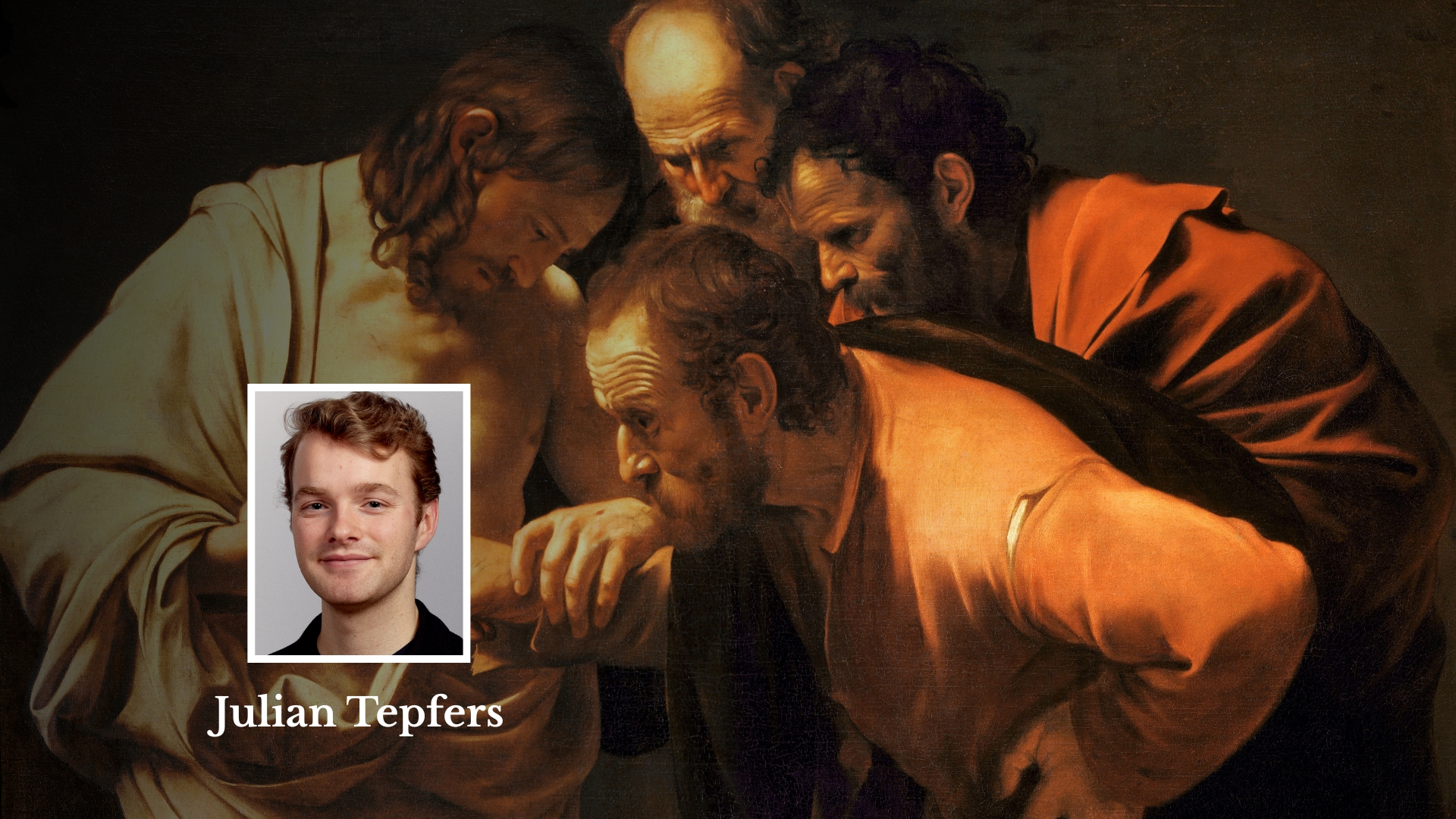 Selv etter at alle Jesu disipler hadde sett Ham gjenoppstått, så tvilte Tomas fortsatt. Han simpelthen kunne ikke få seg til å tro på denne nye umulige virkelighet. «Hvis jeg ikke får se merkene etter naglene i hendene Hans, og får sette fingeren min i merkene etter naglene og legge hånden min i Hans side, kan jeg slett ikke tro.» Tomas trengte hjelp til å overkomme tvilen, og Jesus viste seg så for ham lys levende. Akkurat denne scenen er det Caravaggio fremstiller i et av de ypperste eksemplene på klassisk figurativ kunst.