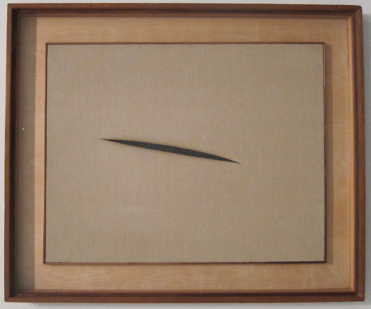 For å illustrere dette har jeg valgt Lucio Fontanas Spatial Concept ‘Waiting’. Fontanas kunstverk konfronterer oss med en flenge i lerretet, og intet annet. Det er slik en åpen invitasjon til å tre inn i virkeligheten bak, men det er ikke noe som hjelper oss å ta spranget. Vi tviler på kunstverkets virkelighet fordi vi ikke kan se den. Vi, betrakteren, er nå Tomas. I motsetning til Caravaggios maleri har vi her ingen stedfortreder. Vi kan ikke se Tomas’ opphevelse av tvilen for å hjelpe oss å oppheve vår egen. Alt hviler på våre skuldre, og det er ene og alene betrakteren som må løfte sin vantro finger for å bedre tro på det Fontana viser oss.