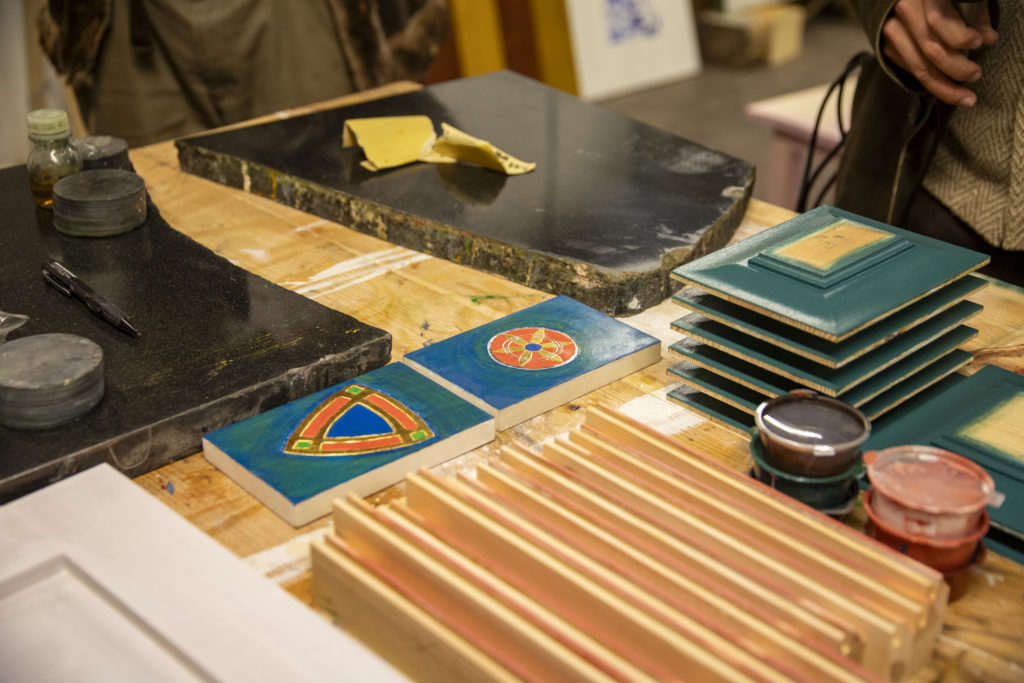 Enkle, men smarte, verktøy som ser ut som at de kunne vært konstruert i middelalderen, blir brukt til å sjekke at gjentakende former på kuppel og figuren er like. Håkon er opptatt av forskjellen på en kopi og en rekonstruksjon – og forklarer at døpefonten ikke kan bli identisk som den opprinnelige døpefonten, men at den lages fra bunnen for å bli mest mulig lik. Døpefonten fra Gamle Aker står oppstilt i klasserommet slik at en sammenligning er mulig under hele prosessen.