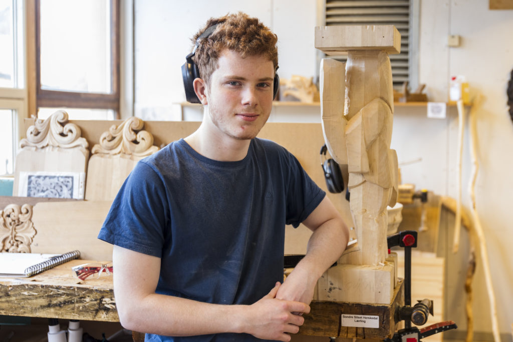De to elevene Håkon Bjo Reinås og Sondre Silset Herskedal står ved hver sin høvelbenk og kan vise frem et spesielt prosjekt de holder på med. De to elevene rekonstruerer nemlig døpefonten i Gamle Aker kirke i Oslo. Døpefonten er laget i tre, og på grunn av sin høye alder og flittige bruk, må den nå erstattes. Originalen er stilt frem i et monter, og elevene jobber med å forme en kuppel og en stett, som siden skal males og forgylles av dekormalinglinjens elever.