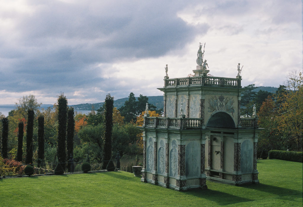 Her lurer en eksplosjon av skjønnhet rundt hver busk og stamme: Det shakespearianske utendørsteateret omslynget av eføy og kaprifol, det greske rundtempelet som en liten ø i havedammen, fontenen med havguden Ægir, den tibetansk-buddhistiske stupaen. Over alle herlighetene troner dog triumfbuen i barokk stil.