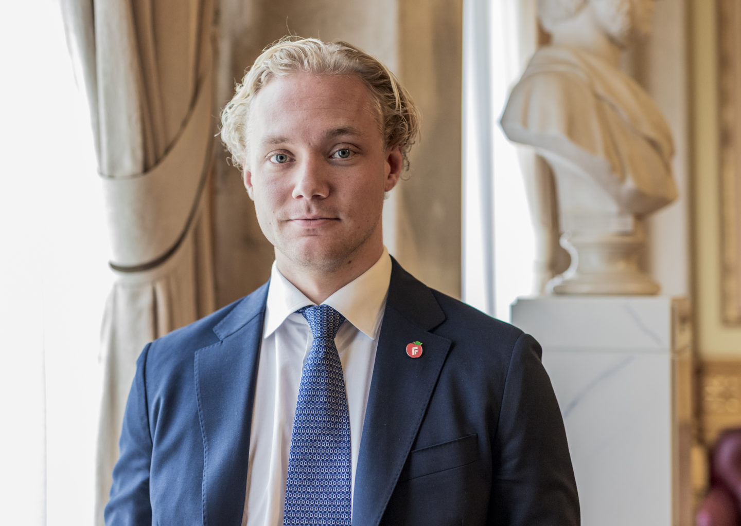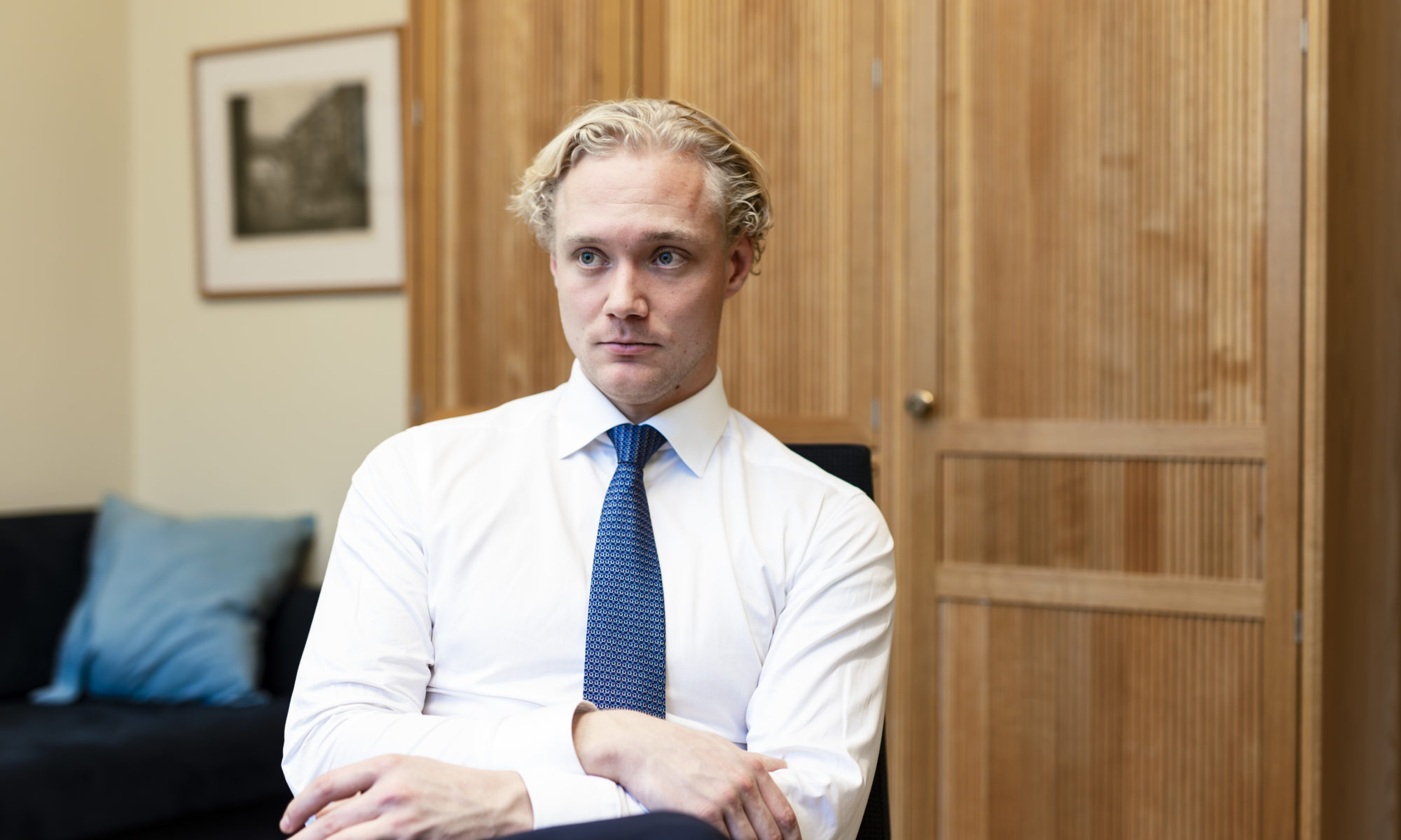 Lederen for Fremskrittspartiets Ungdom og nå nyvalgt stortingsrepresentant, inviterer oss inn til sitt nye herberge – et enemannskontor på Stortinget. I skapet overfor der vi sitter henger det nystrøkne dresser. Rundt omkring er bøker i stabler, og foran oss sitter en frisert ungfugl med gullokker og en brennende drivkraft.