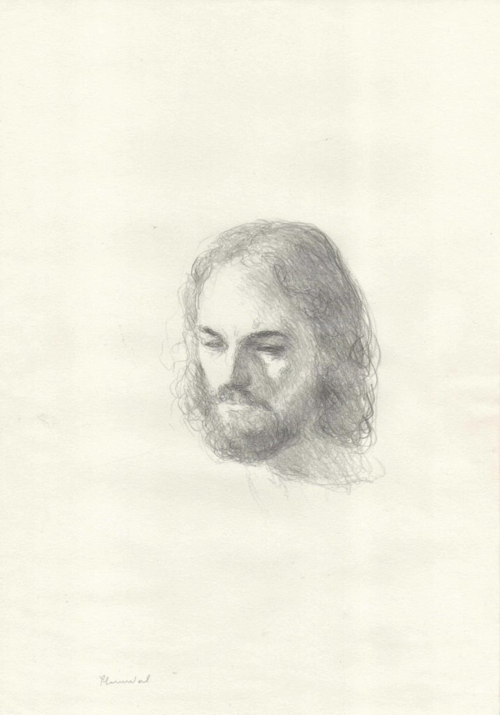 – Etter å ha sett gjennom alle tegningene jeg har laget fra 15-årsalderen til i dag, slo det meg at blant alle portrettene ikke en eneste gang hadde tegnet en modell som ser rett på meg. Hvorvidt det er noen meningsdybde i dette eller ei er ikke godt å si, men dette konsekvente og komplette fravær av blikkontakt var i det minste påfallende, og kunne kanskje belyse en uvillighet til å bli sett, og i forlengelse av det kanskje en uvillighet til å se sitt eget selv, forteller han og utdyper: